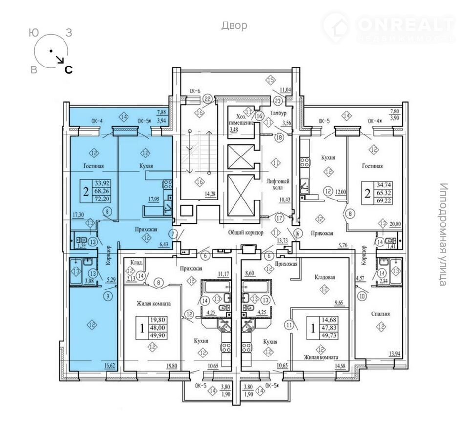 Общая площадь 72.2 м2