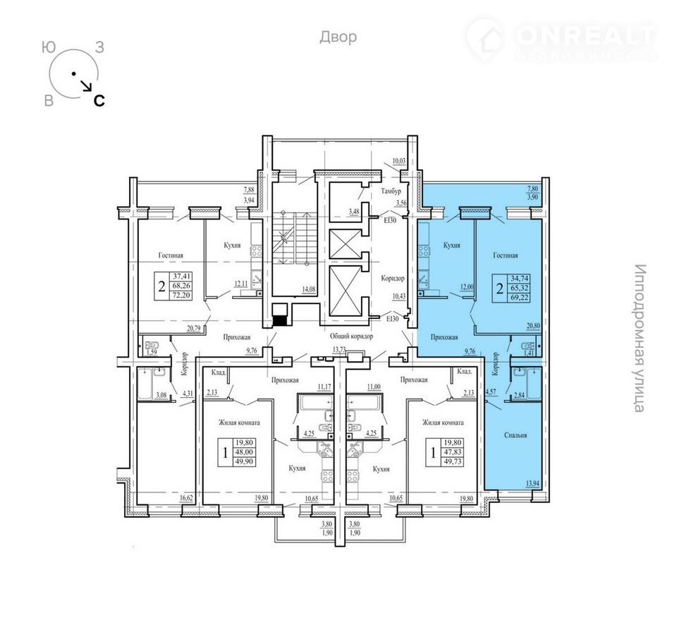 Общая площадь 69.2 м2