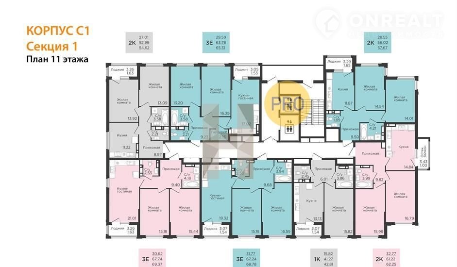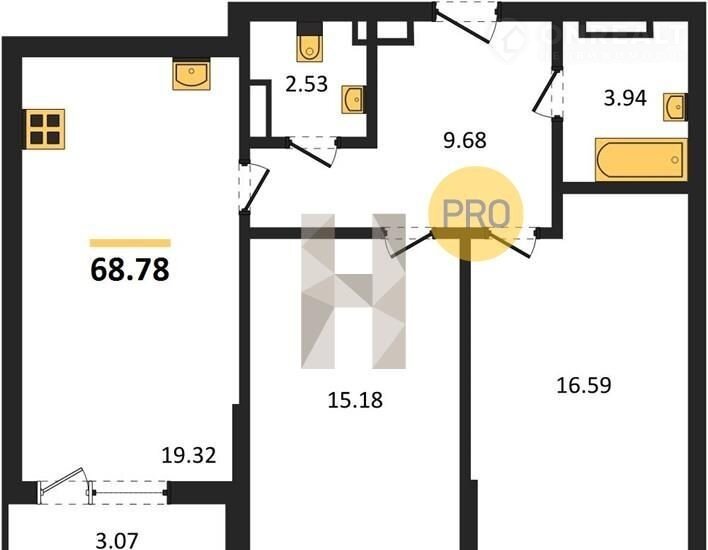 2-комнатная квартира, 69.5 м2, этаж 11 / 13, на продажу в Воронеже