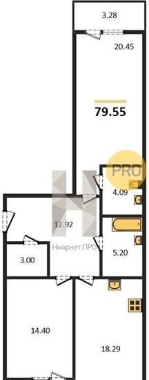 Общая площадь 79.6 м2