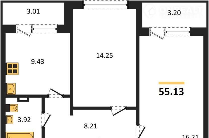 Общая площадь 55.1 м2