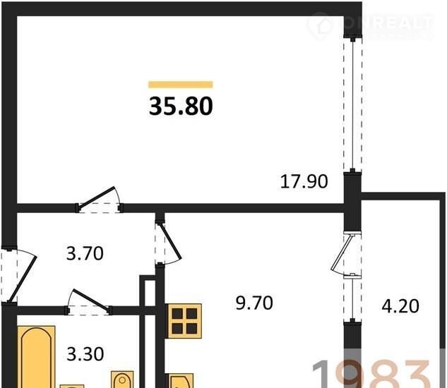 Общая площадь 35.8 м2