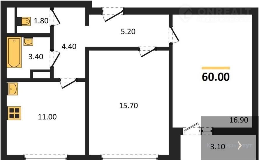 Общая площадь 60 м2