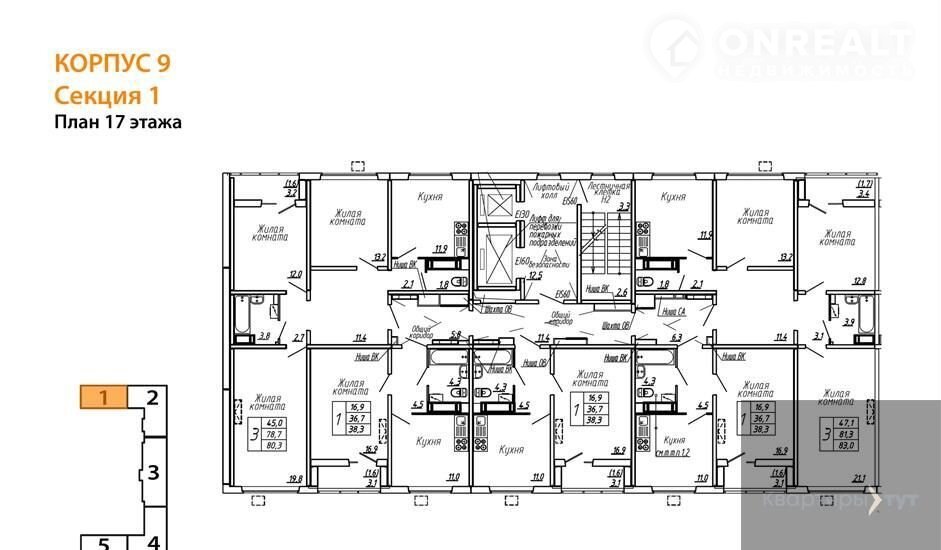 Квартира: 1 к 38,30 кв.м., 17 этаж в комплексе Яблоневые сады (ДСК), 1 очередь, корп.9, сдача: 2кв. , этажей: 19, адрес Воронеж г., Ломоносова ул., д. 129, Застройщик: ДСК.