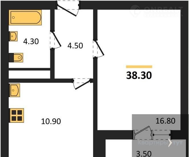 1-комнатная квартира, 38.3 м2, этаж 17 / 19, на продажу в Воронеже
