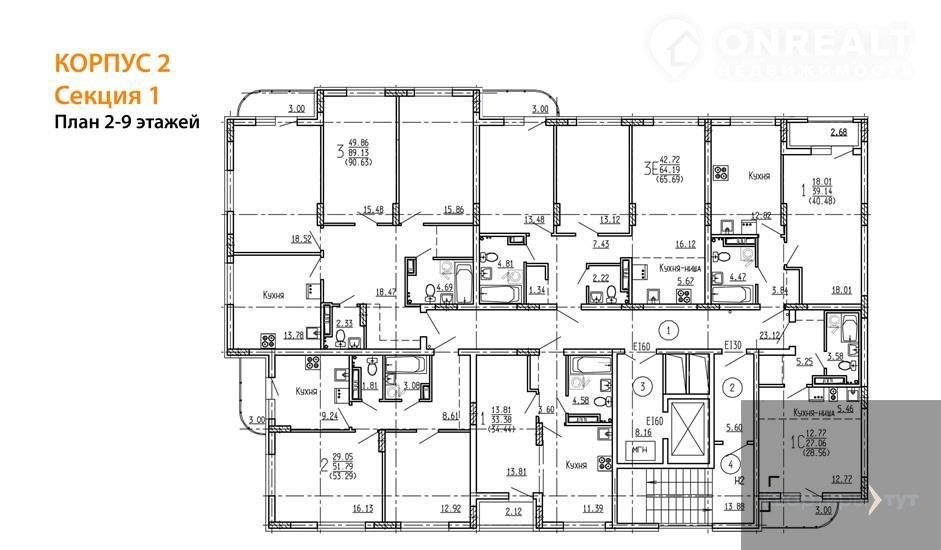 Квартира: 2 к 53,29 кв.м., 9 этаж в комплексе Оникс, 1 очередь, корп.2, сдача: 1кв. , этажей: 9, адрес Воронеж г., Тимирязева ул., , Застройщик: Проект Инвест.