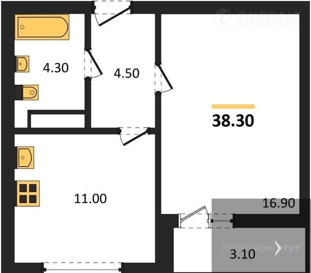 Общая площадь 38.3 м2