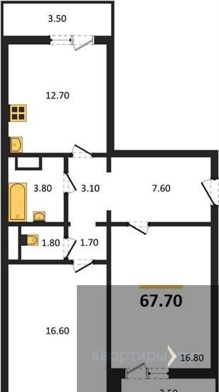 2-комнатная квартира, 67.7 м2, этаж 3 / 19, на продажу в Воронеже