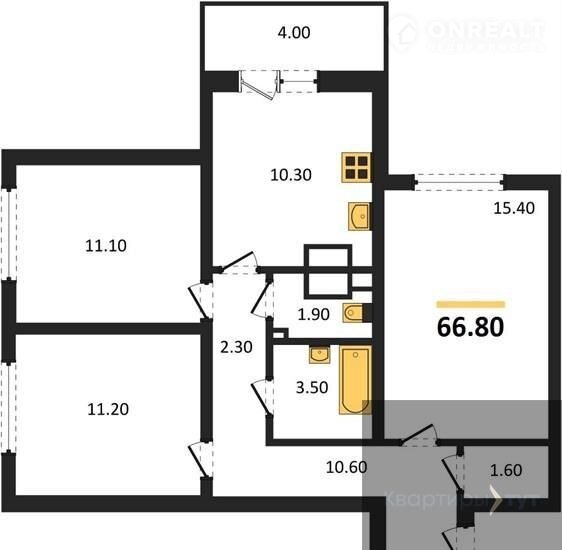 3-комнатная квартира, 66.8 м2, этаж 3 / 25, на продажу в Воронеже