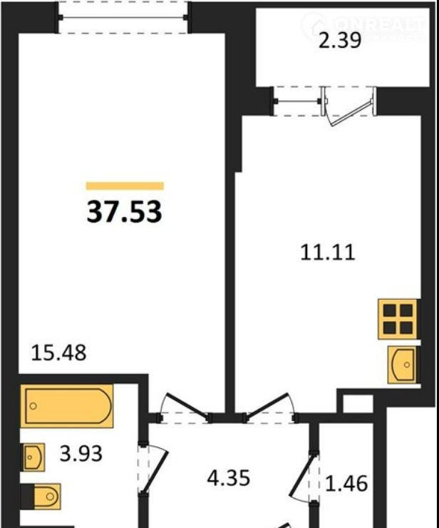 Общая площадь 37.5 м2