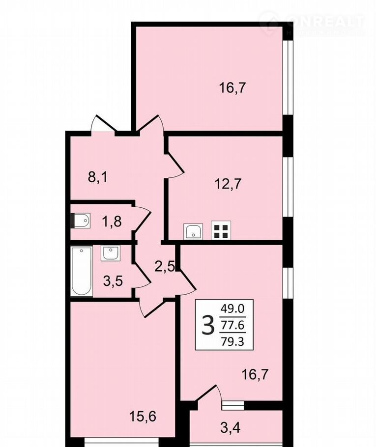 Общая площадь 79.3 м2