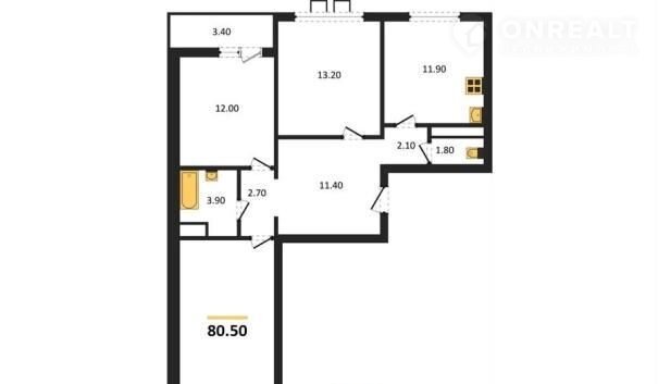 Общая площадь 80.5 м2