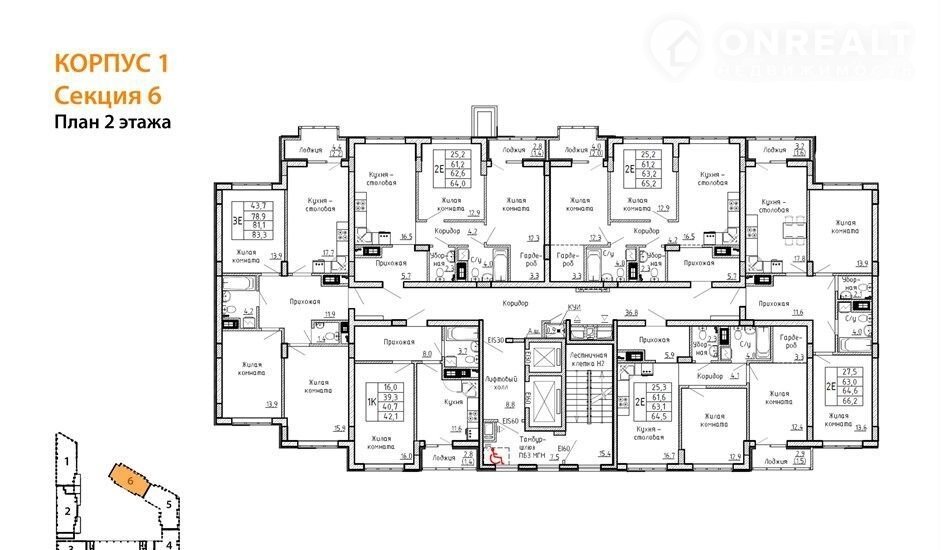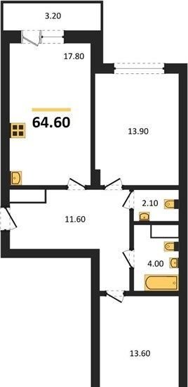Общая площадь 64.6 м2