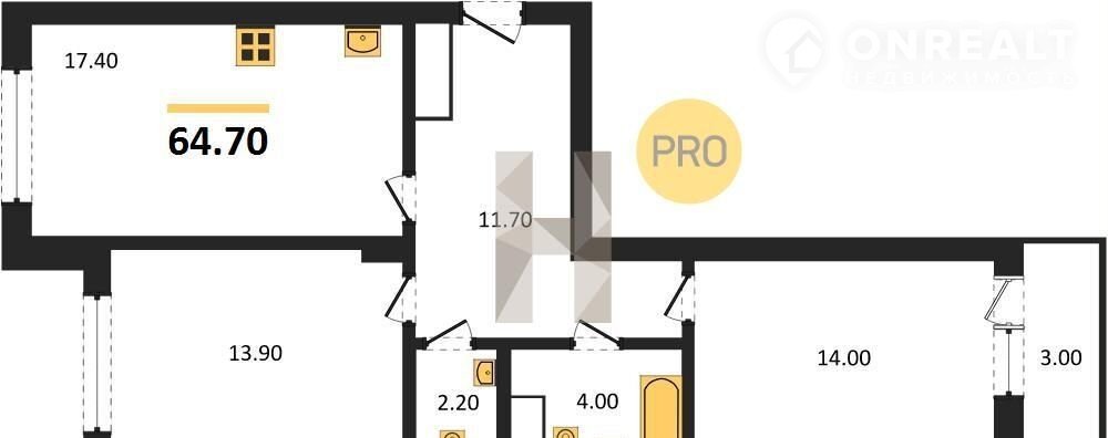 Общая площадь 64.7 м2