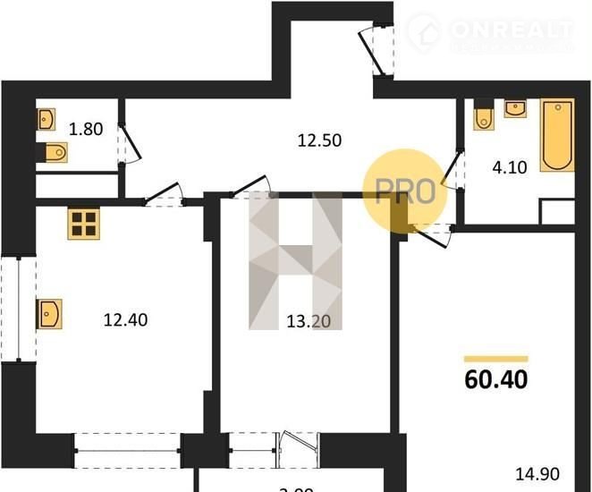 Общая площадь 60.4 м2