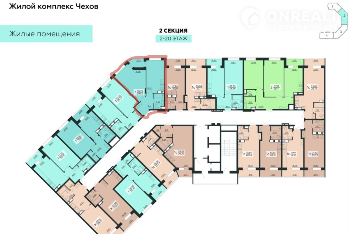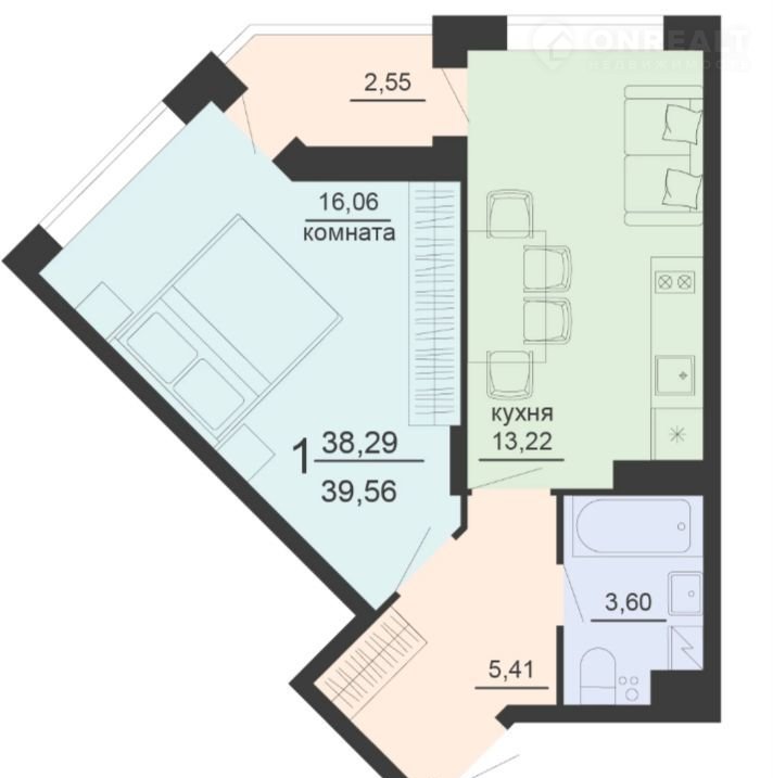 Общая площадь 39.6 м2