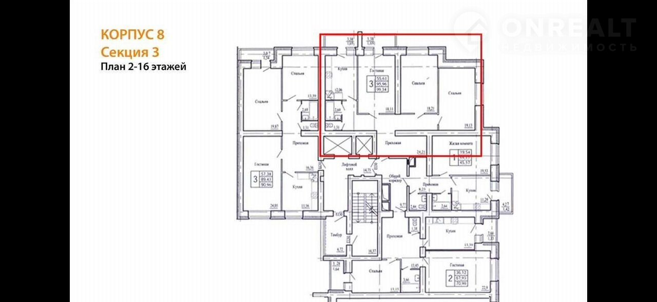 Общая площадь: 100 кв. м. Жилая площадь: 55,45 кв. м. Площадь кухни: 12,06 кв. м. Высота потолков составляет 2,68 метра, что добавляет пространству воздуха и света.
