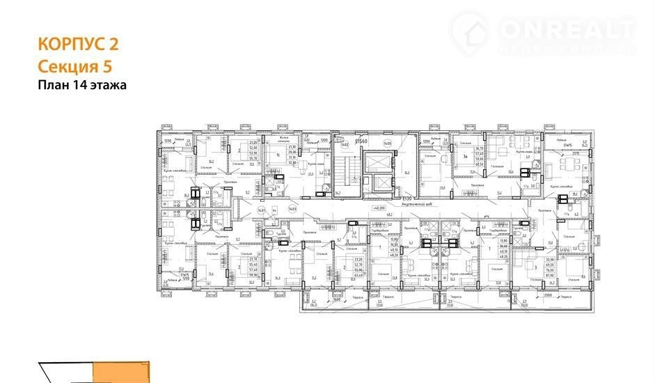 2-комнатная квартира, 53.8 м2, этаж 14 / 14, на продажу в Воронеже