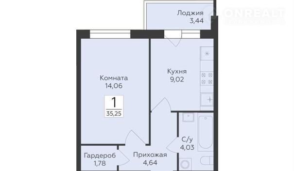 Квартира: 1 к 35,25 кв.м., 2 этаж в комплексе FLORA, 1 очередь, корп.2, сдача: 4кв. , этажей: 17, адрес Воронеж г., Ломоносова ул., , Застройщик: Развитие.