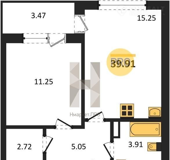 Общая площадь 39.9 м2
