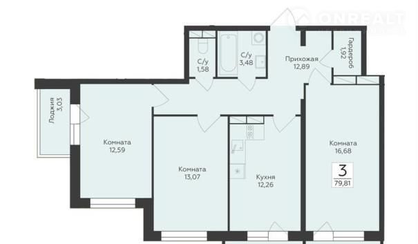 Квартира: 3 к 79,81 кв.м., 13 этаж в комплексе FLORA, 1 очередь, корп.2, сдача: 4кв. , этажей: 17, адрес Воронеж г., Ломоносова ул., , Застройщик: Развитие.
