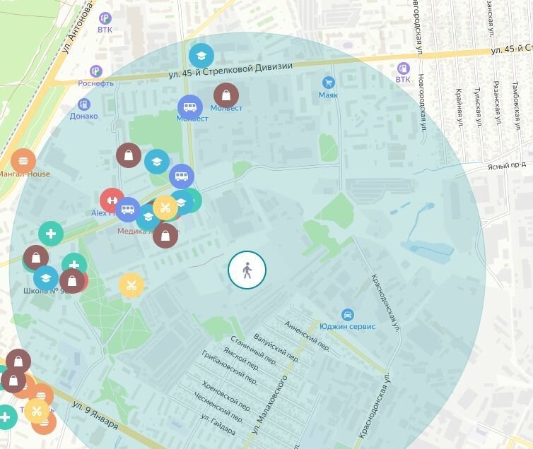 Он окружен большим количеством скверов и лесопарковых зон. В шаговой доступности сразу несколько остановок общественного транспорта, школы, детские сады и магазины. Совсем скоро начнется строительство новой современной школы на 1000 мест, планируется запуск дороги-дублера Московского проспекта, которая разгрузит транспортные потоки и обеспечит альтернативный проезд, а также сократит время поездки до центральной части города. Путь от дома до исторического центра Воронежа займет около 15 минут на автомобиле, а благодаря развитой системе городского транспорта без проблем можно добраться в любую точку города.
