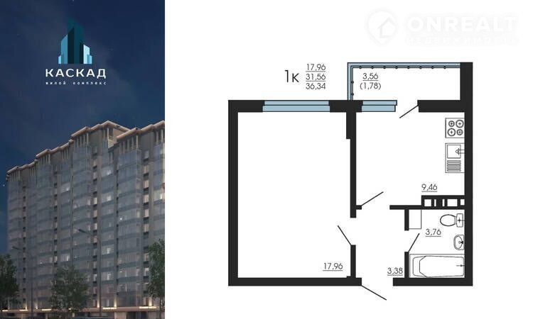 Общая площадь 36.4 м2
