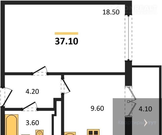 Общая площадь 37.1 м2