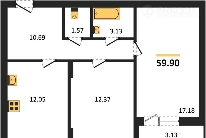 Общая площадь 59.7 м2