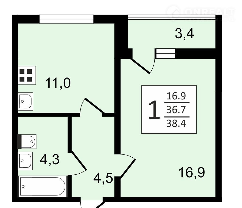 Общая площадь 38.3 м2