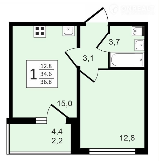 Общая площадь 36.8 м2