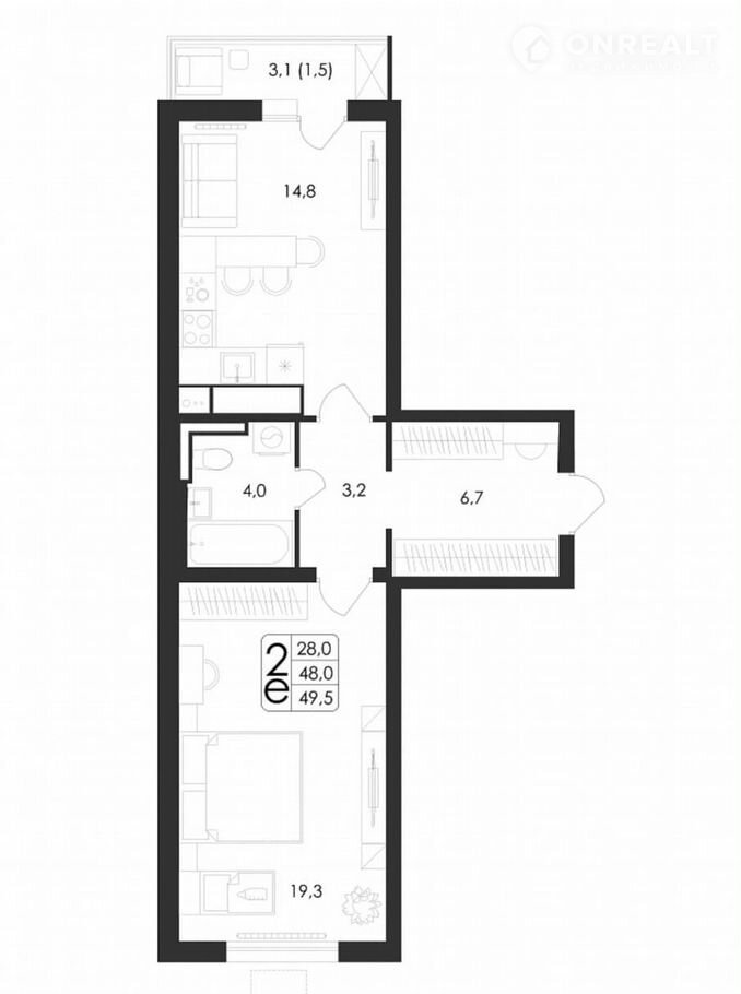 Общая площадь 49.5 м2