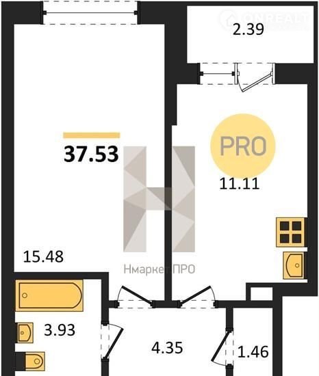 Общая площадь 37.5 м2