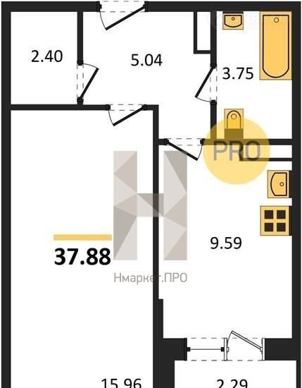 Общая площадь 37.9 м2