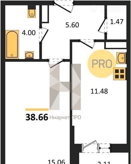 Общая площадь 38.7 м2