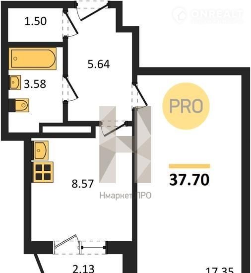 Общая площадь 37.7 м2