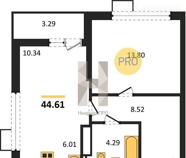 Общая площадь 44.6 м2