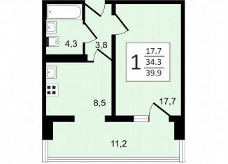 Продается однокомнатная квартира, 39.6 м2, улица Полковника Богомолова, 1