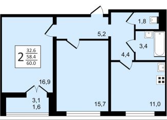 • Продам двухкомнатную квартиру, 62.2 м2, Воронеж