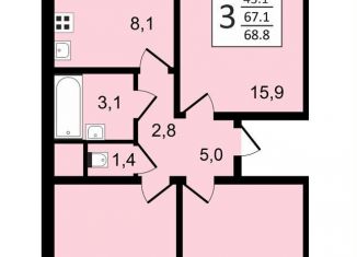 Общая площадь: 68.8 м2