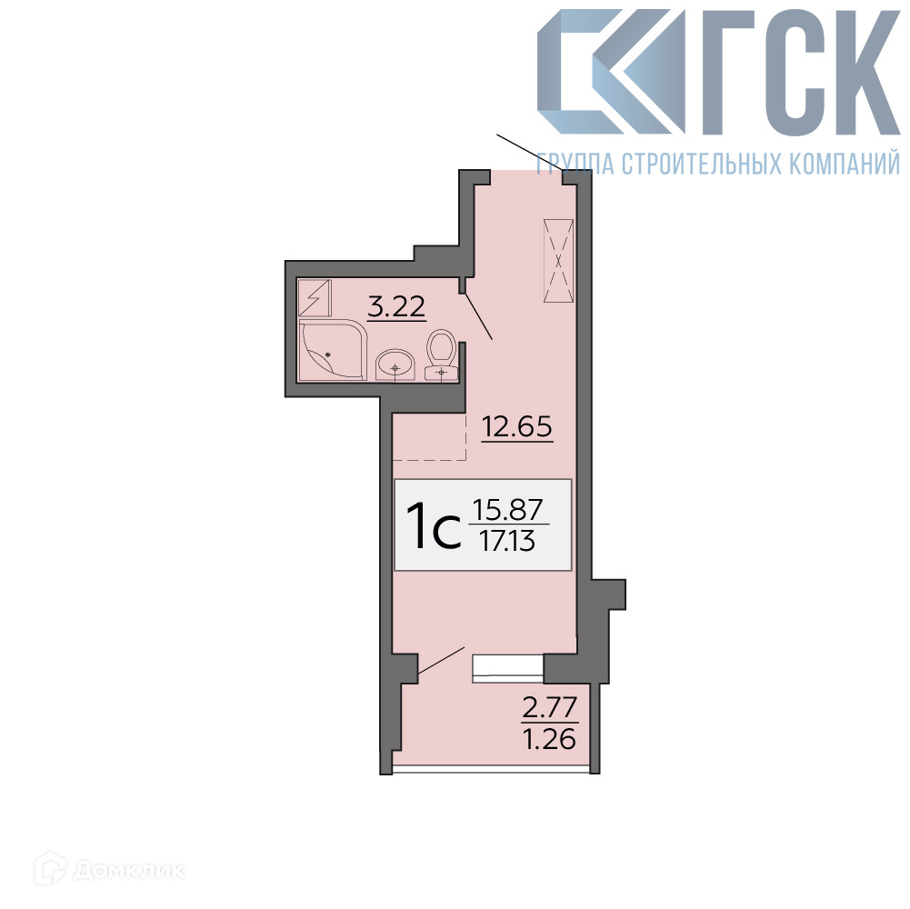 Общая площадь 17.13 м2