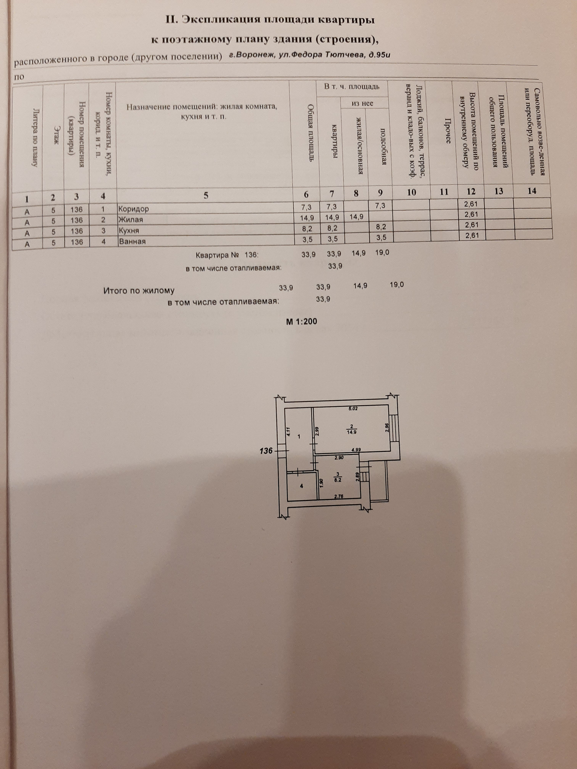 1-комнатная квартира, 33 м2, этаж 5 / 9, на продажу в Воронеже, улица Федора Тютчева, 95И
