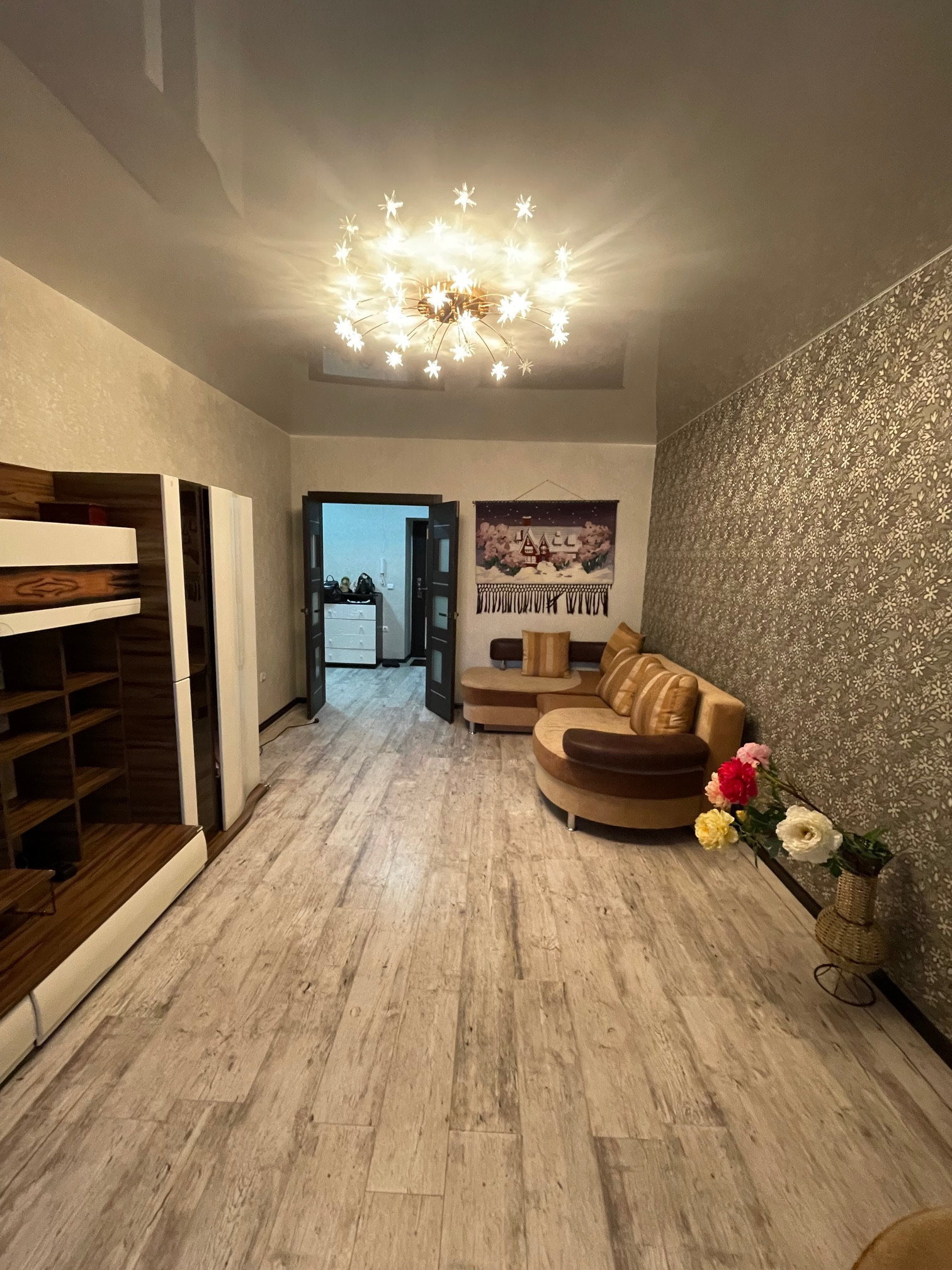 Квартира с прекрасным качественным евроремонтом, санузел в современном кафеле, на полу дорогой ламинат, немецкие обои, хорошие межкомнатные двери и прочная металлическая входная дверь.
