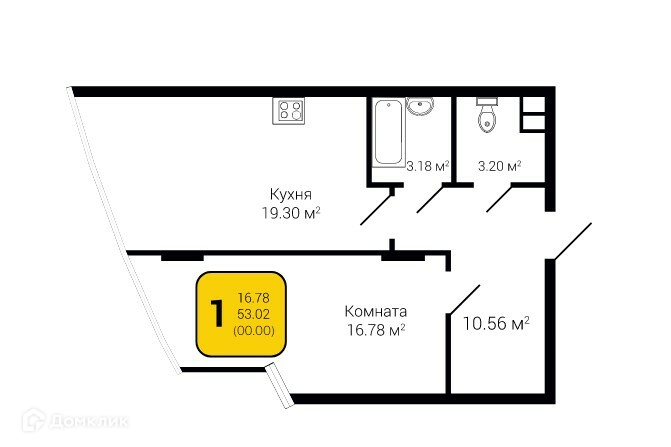 Общая площадь 53 м2