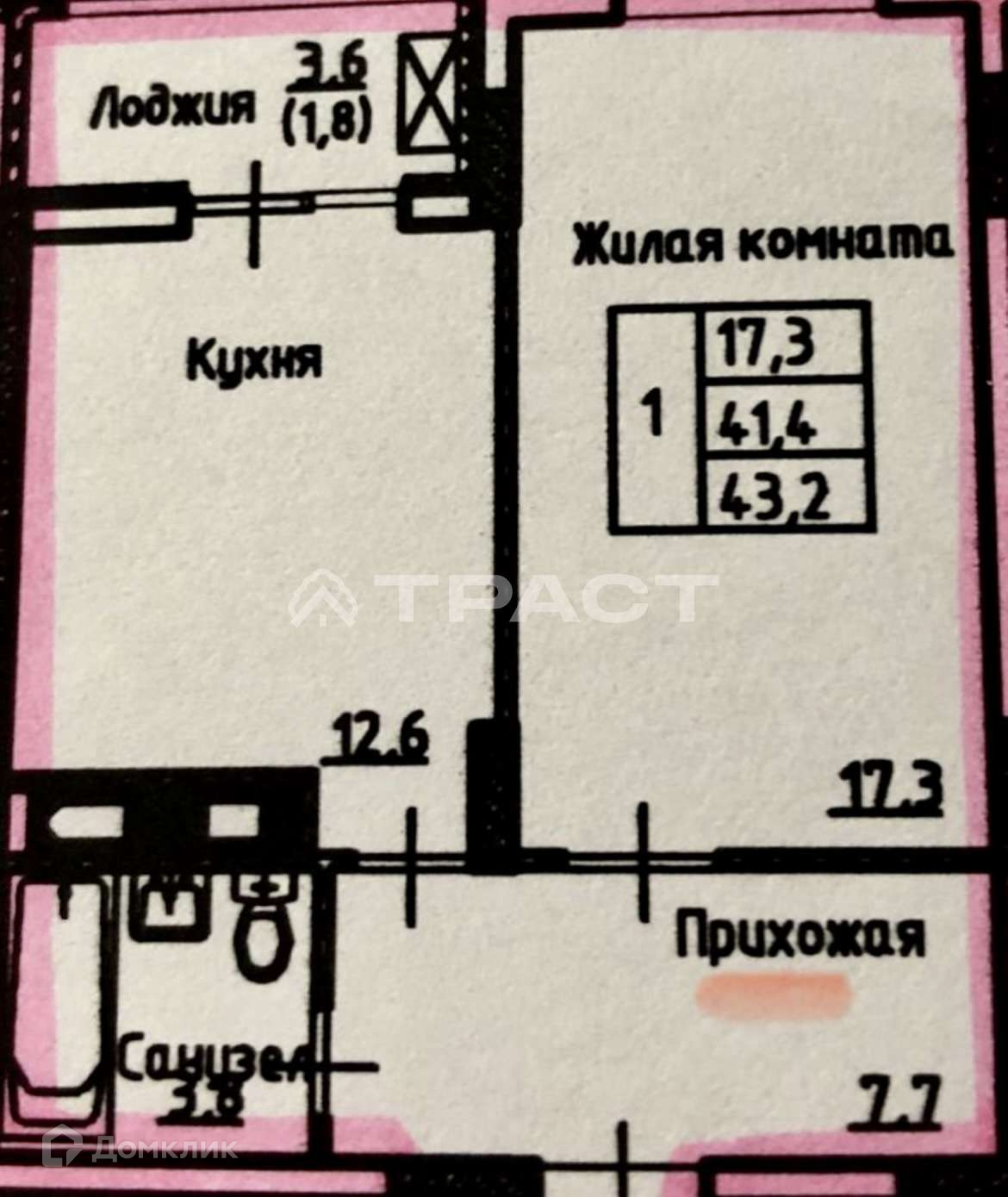 Общая площадь 43.2 м2