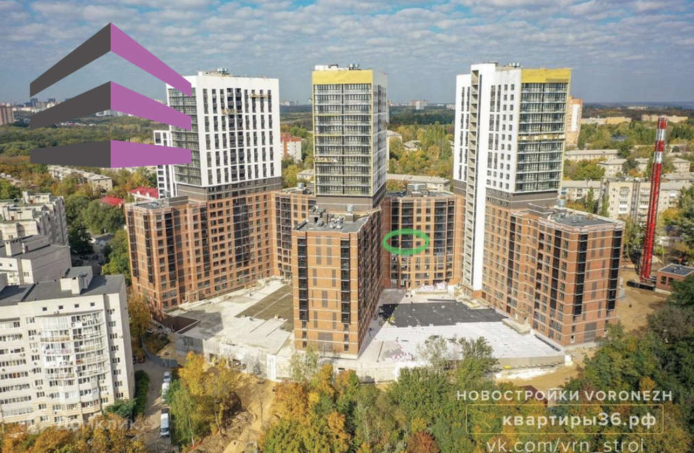 Благоустройство прилегающей территории включает в себя организацию детских и спортивных площадок, зон отдыха и озеленение. Предусмотрены открытые гостевые парковки и подземный паркинг. Первые этажи отведены под коммерческие помещения. В шаговой доступности находятся детские сады-#46 и #61, школы-#62, медицинские учреждения, аптеки, продовольственные магазины, парк Динамо и берег реки Воронеж.
