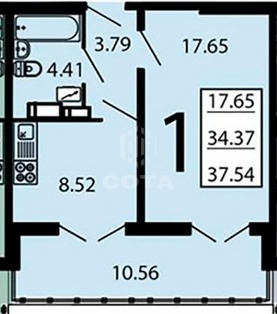 Общая площадь 37.2 м2