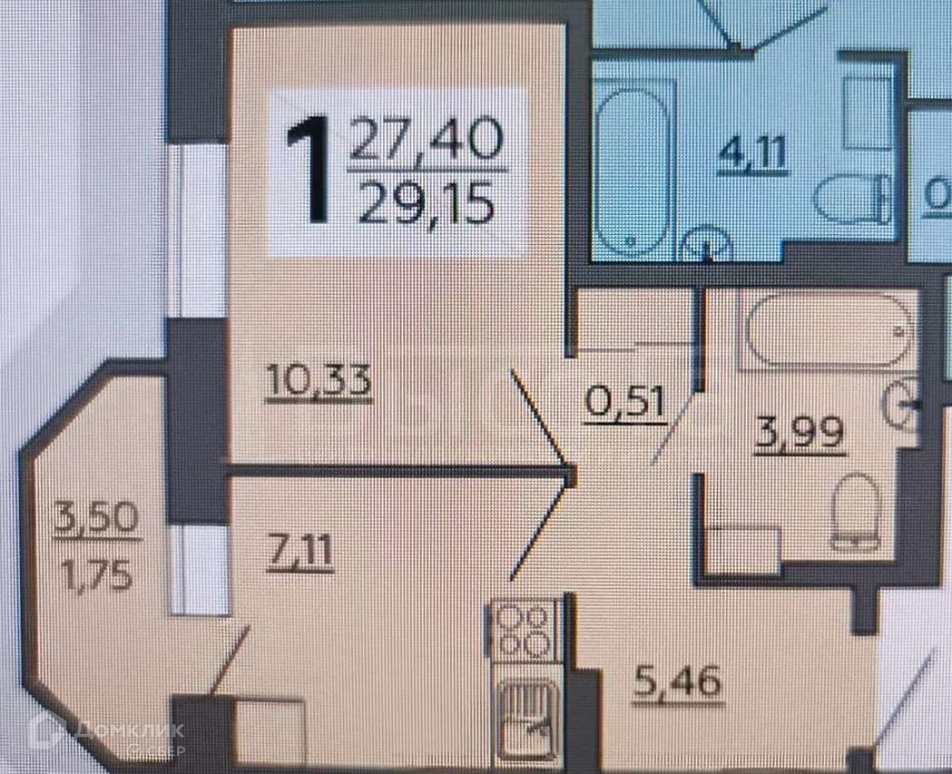 Общая площадь 29.2 м2