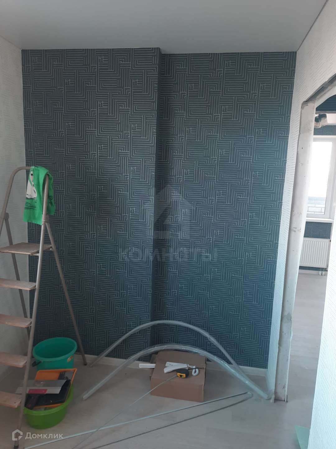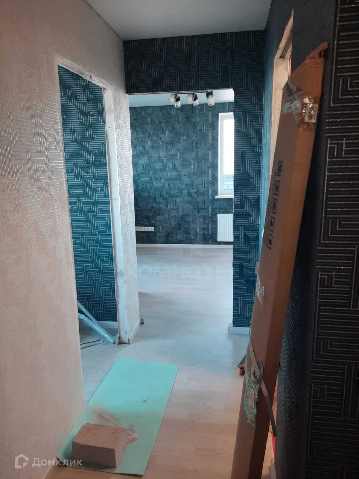 Квартира приобреталась в черновой отделке, сделана качественная заливка пола, проведены электромонтажные работы. Комнаты изолированные. Входная дверь железная. На полу уложен ламинат. На стенах обои с геометрическим рисунком в двух цветах: синего и белого. Потолки натяжные по всему периметру. Выход на лоджию из жилой комнаты. Санузел совмещенный, выложен плиткой. Материалы для завершения ремонта закуплены и остаются при продаже.