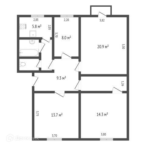 Общая площадь 67.7 м2